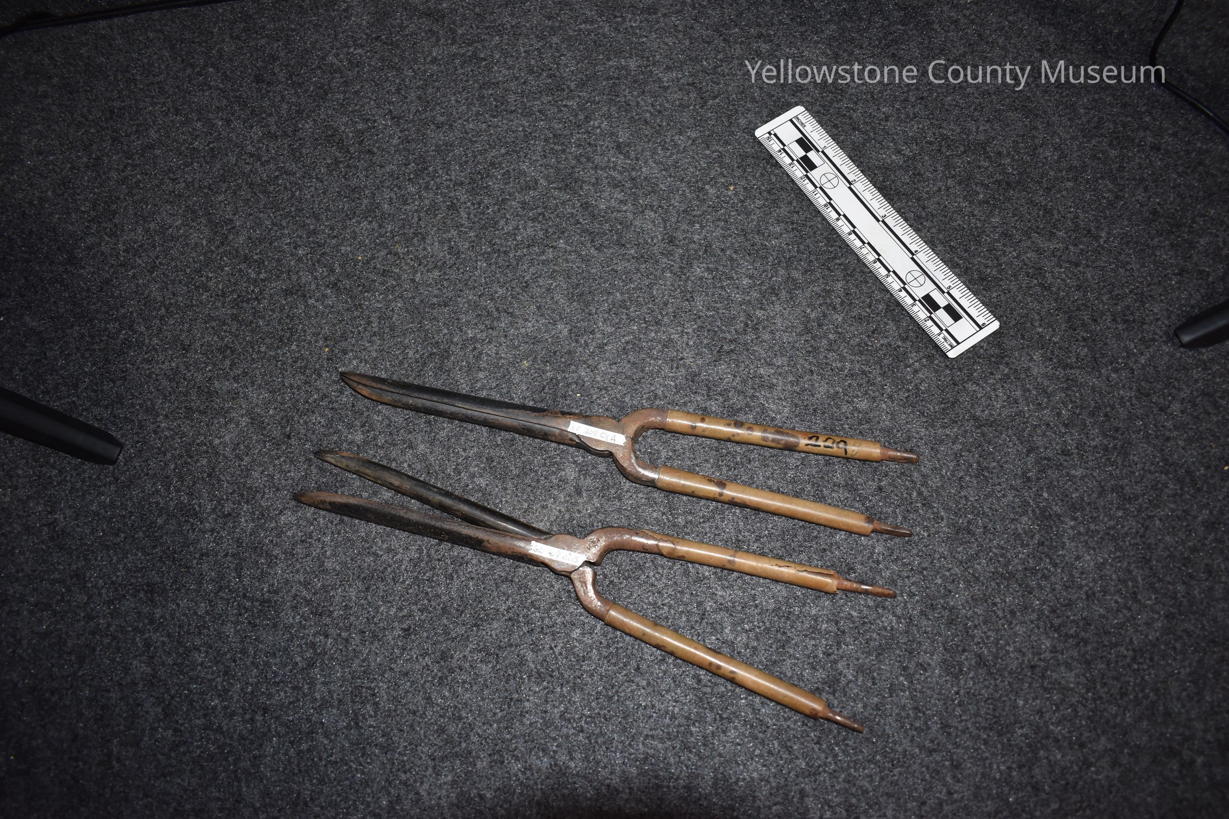 (Two Irons) with brown handles.