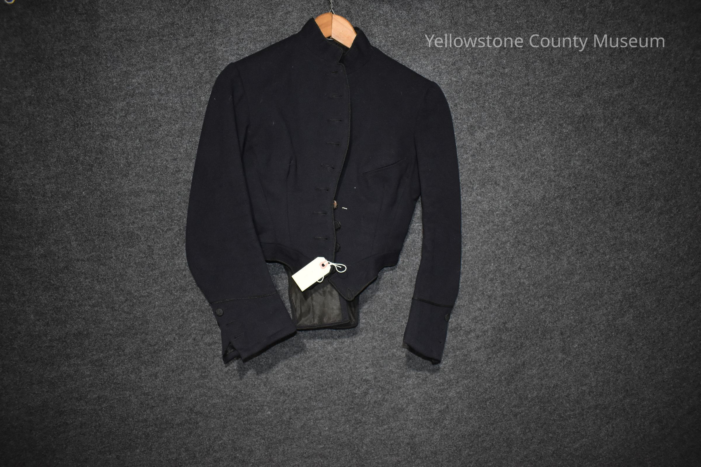 Victorian Era Lady's Jacket; wool with long sleeves, buttons at front, back with tail.Acquisition