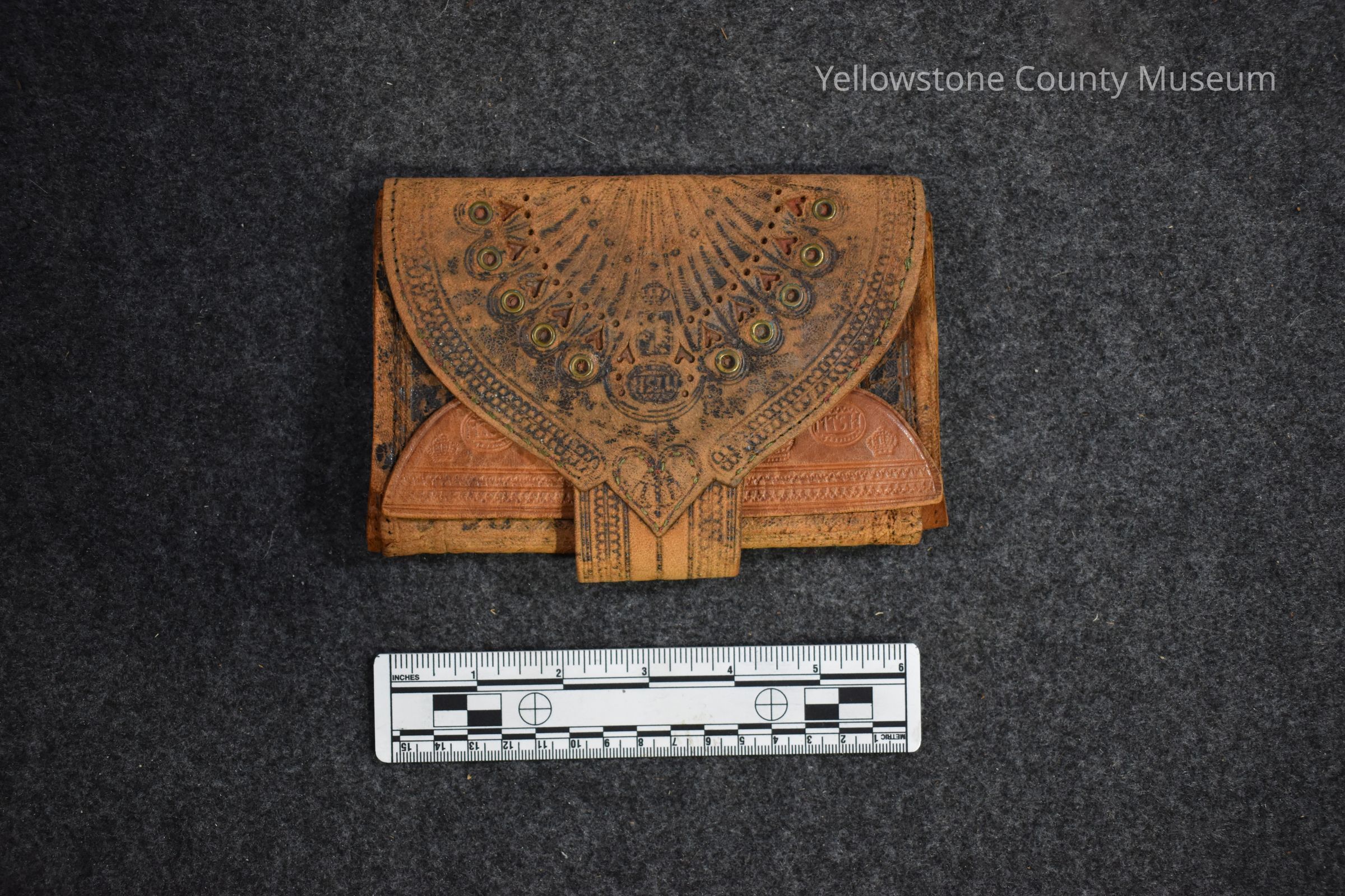 Three-fold wallet, stamped crown & heart design; came from Norway, 1851Acquisition