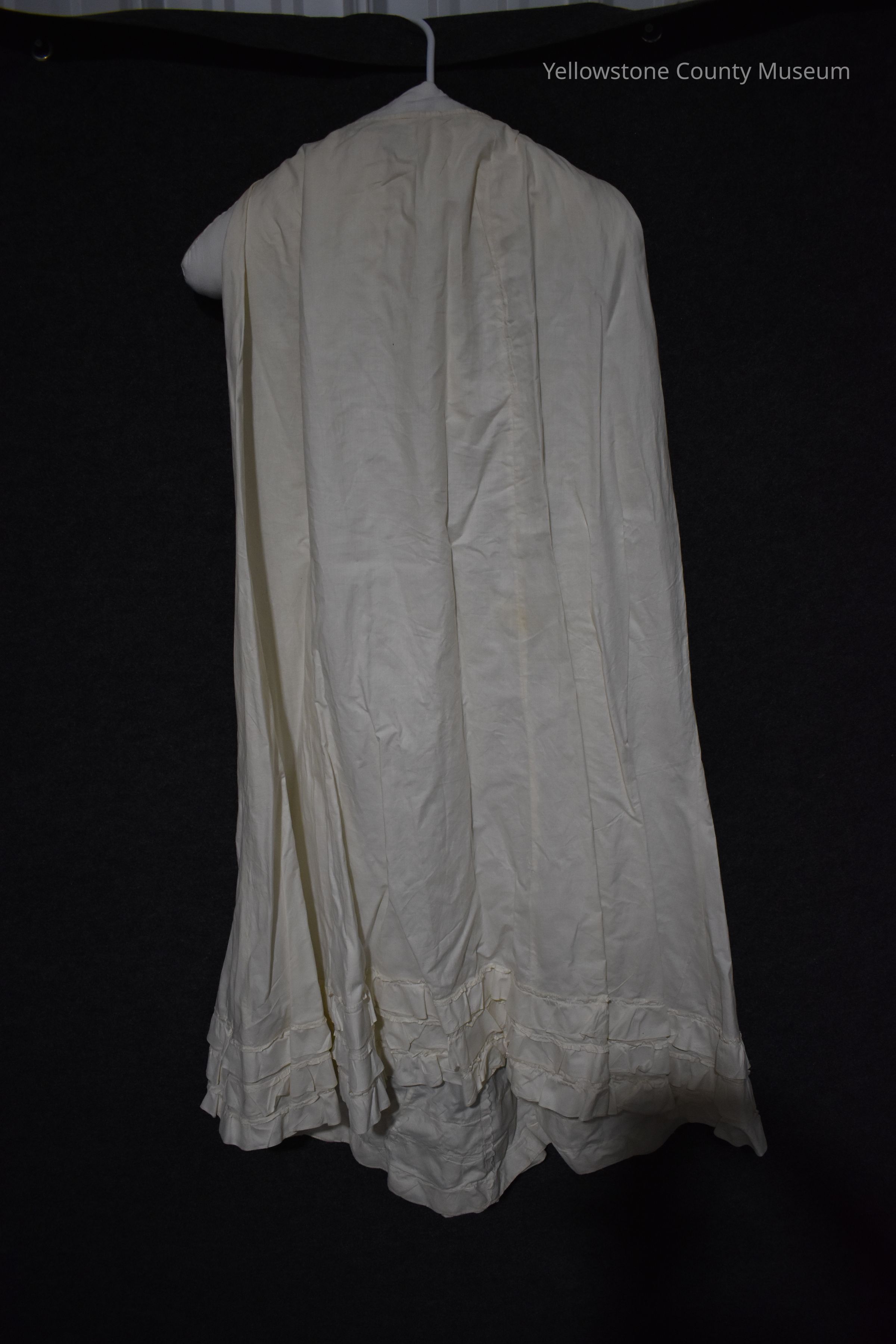 Slip, off white and ruffled at hem; donated w/wedding dress worn by Goldie Ellen McBride, when she married William Allen Cowan at Crafton, Pennsylvania in December, 1902.Acquisition