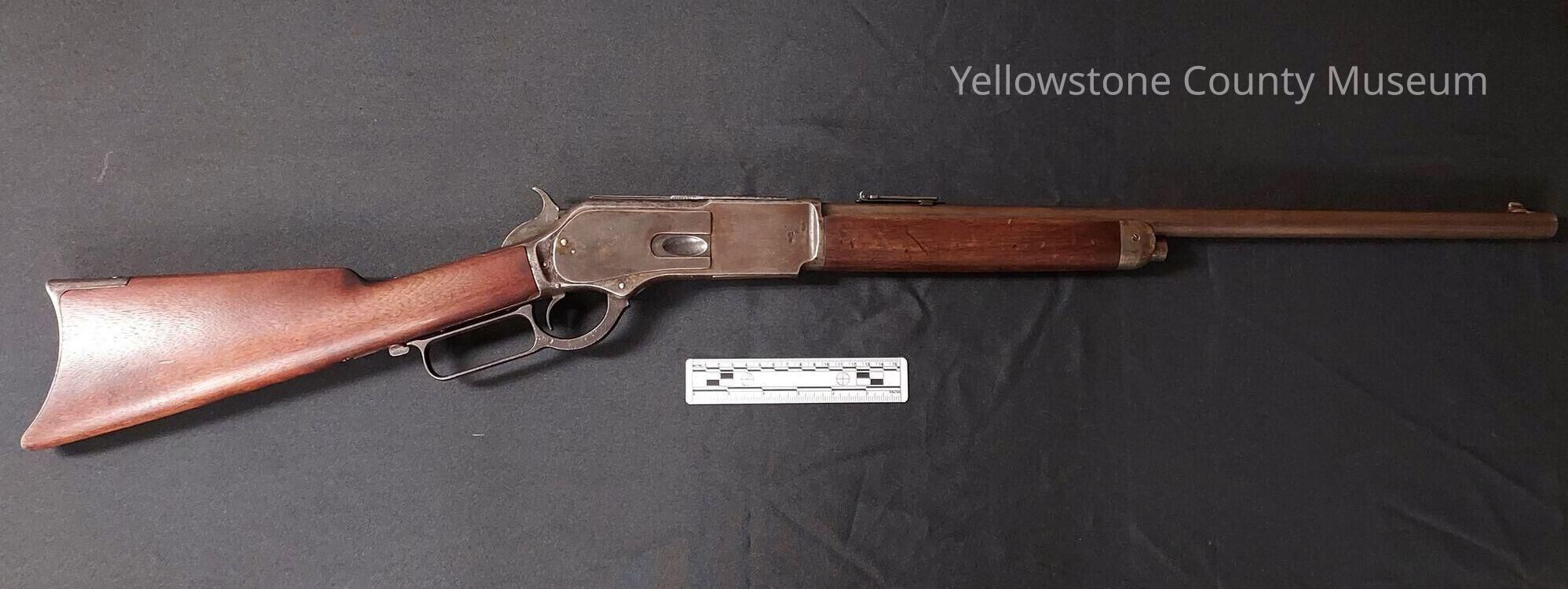 A Winchester Model 1876 Rifle; the rifle is chambered for .50-95 caliber black powder cartridges; the rifle has a wooden buttstock, and an half forestock; the rifle's receiver features an under-lever action, a side-frame loading gate, a hammer, and a retractable dust cover; the rifle has a ladder sight mounted to the barrel; on the tang reads: "Model 1876"; on the dust cover reads: "Winchester Express, 50 cal. 95 GRS; on the barrel behind the ladder sight reads: "50-95"; Serial # 31377.Acquisition