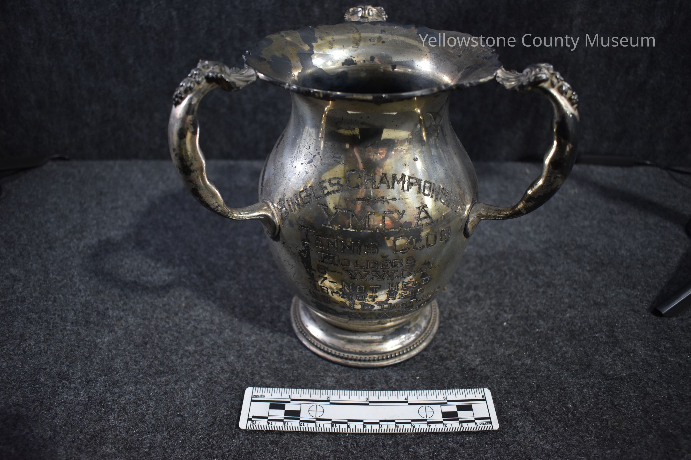 Front of trophy reads: "Singles Championship, Y.M.C.A. Tennis Club Holders: 16-W.W. Gail, 17-not held, 18-Not held, 19-M.C. Dietrich, 20-W.W. Gail."Acquisition