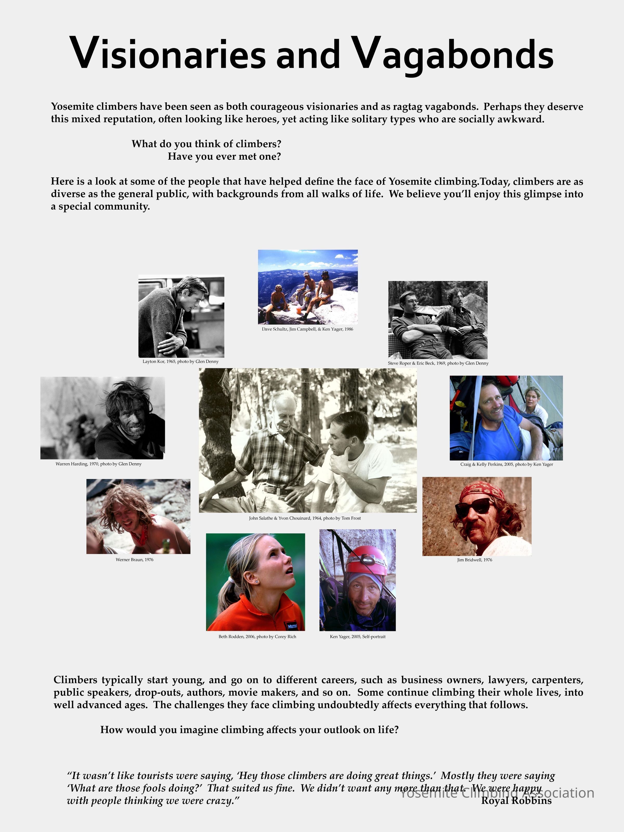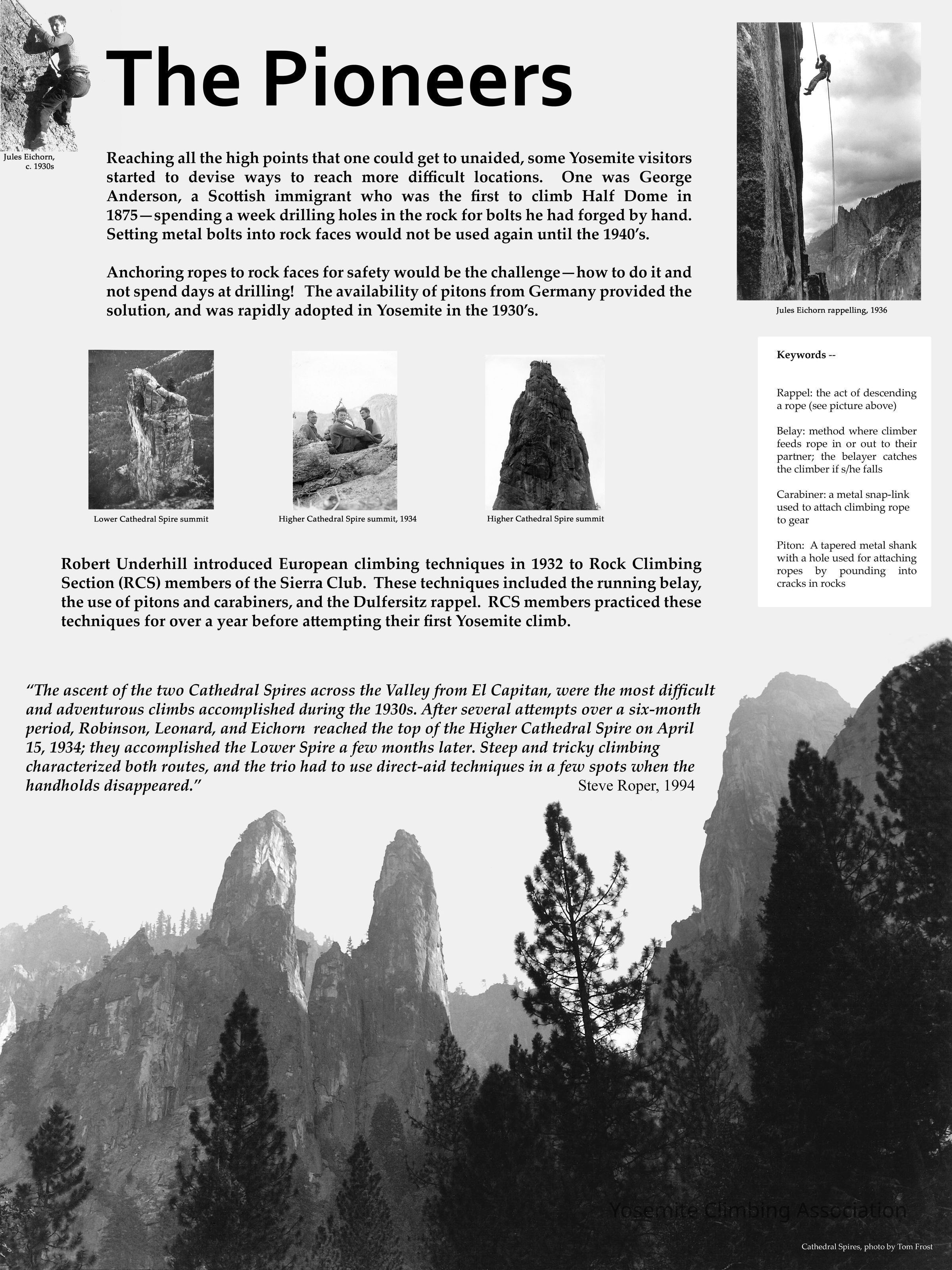 Granite Frontiers: A Century of Yosemite Climbing. Photos for displays.Use