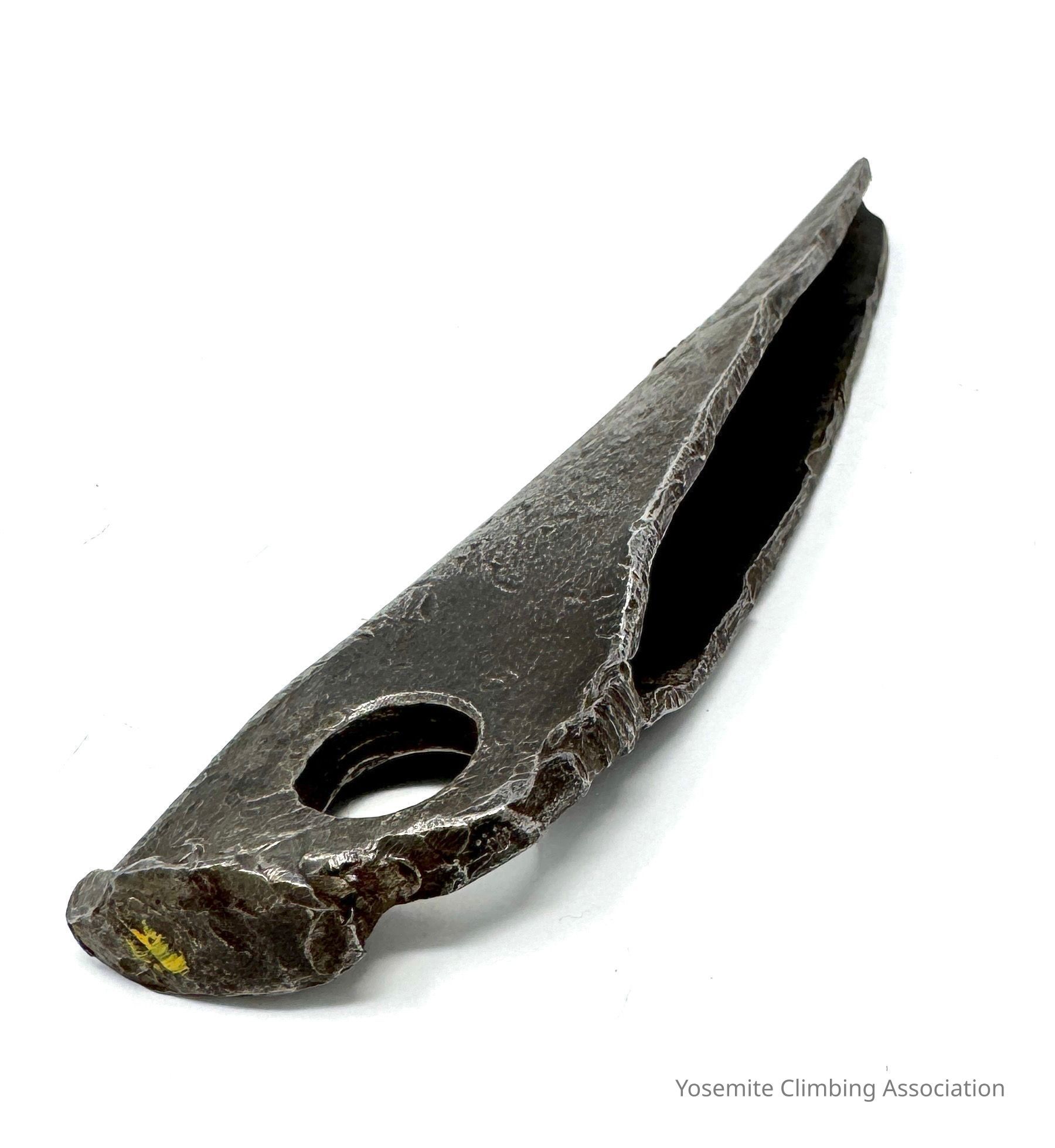 1 1/4 inch angle piton. Brazed head. Thick metal. Well used. Made and used by Jerry Gallwas on the First Ascent of NW Face of Half Dome in 1957 with Mike Sherrick and Royal RobbinsCollection