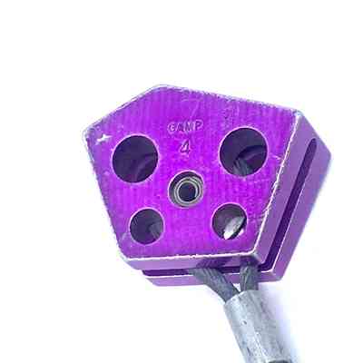 Climbing Hardware, designed to fit into narrow, tapered rock cracks, locking securely when weighted.Context