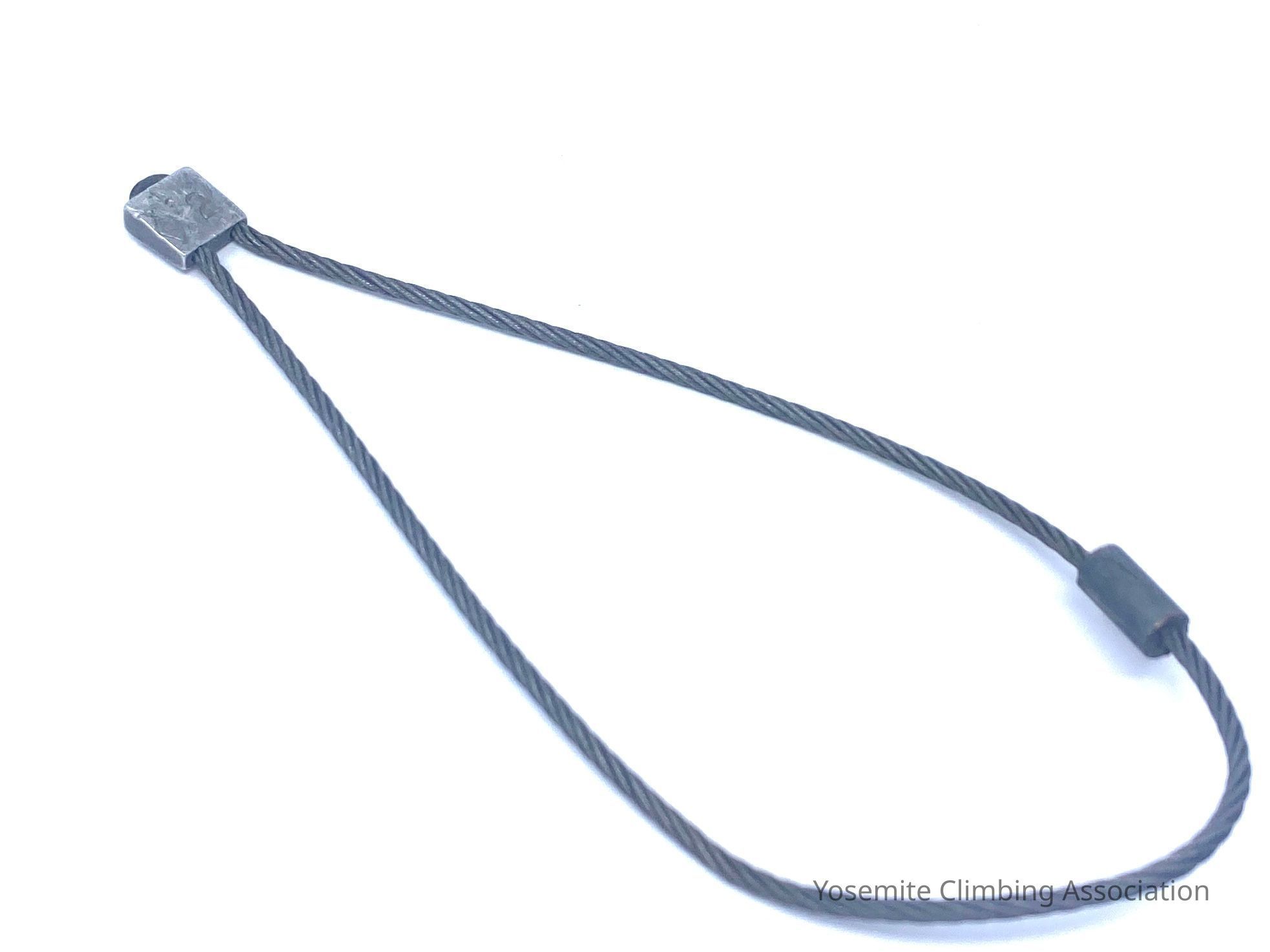 One of the stoppers that was used on the 1973 ascent of the Northwest Face of Half Dome. Climbers Doug Robinson, Dennis Hennek, and Galen Rowell climbed without the use of pitons, making it the first big wall clean ascent. The climbers did not even bring a hammer. It was featured on the cover of National Geographic's June 1974 issue. This was a big achievement at the time because there was not much clean climbing gear in production. This stopper was manufactured by Chouinard Equipment and is an early edition. The later modifications added a sleeve to the wire to protect fingers from damaged threads. They also added later a sliding sleeve to prevent multiple stoppers on racks from getting tangled.Collection