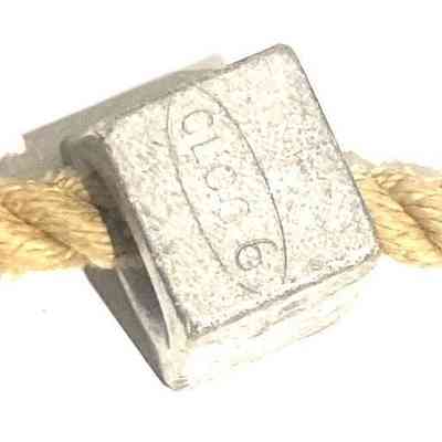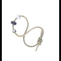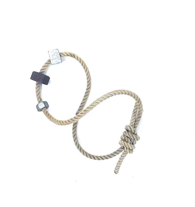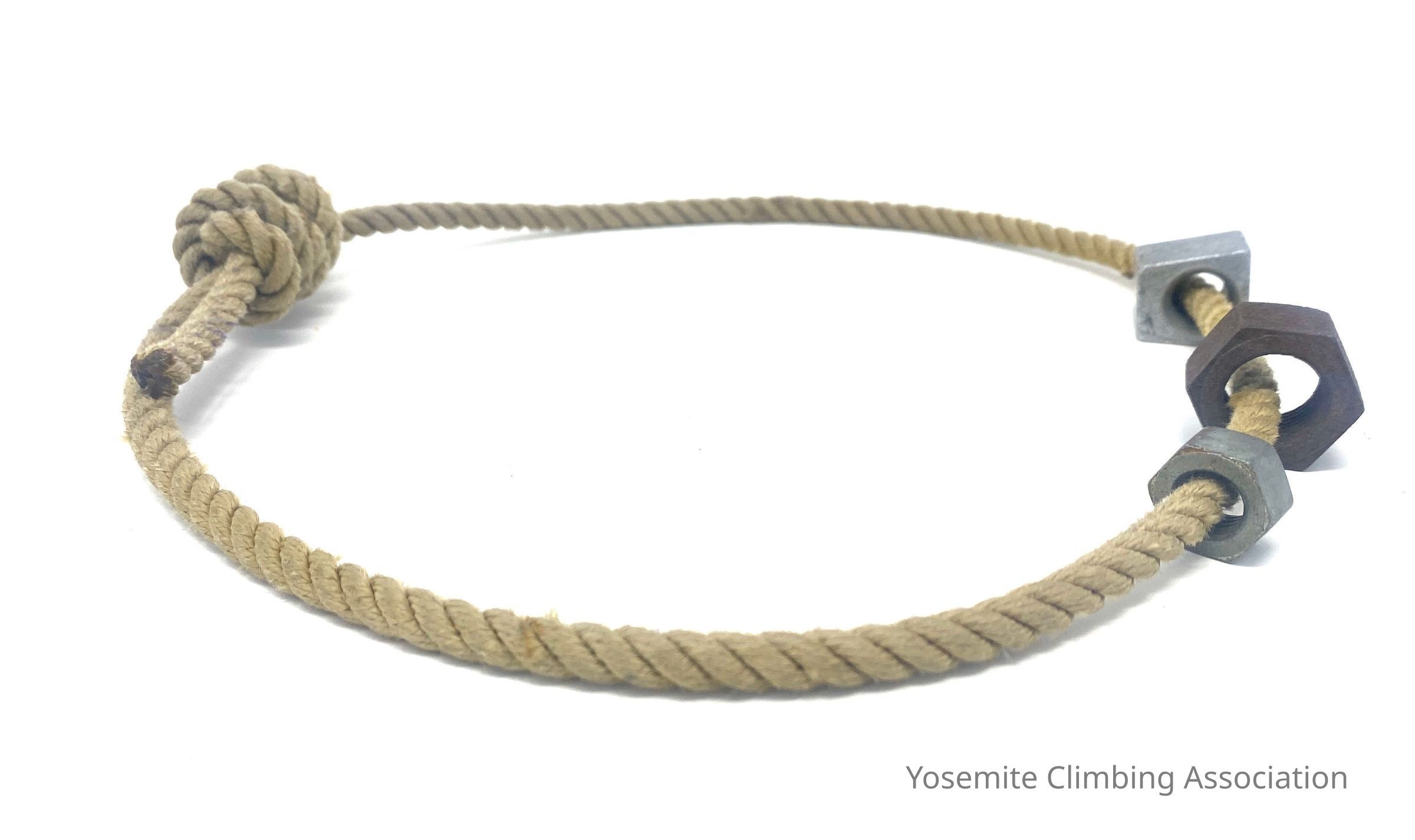 A piece of Goldline Rope with three nuts. Three nuts are attached, one manufactured by CLOG.Use