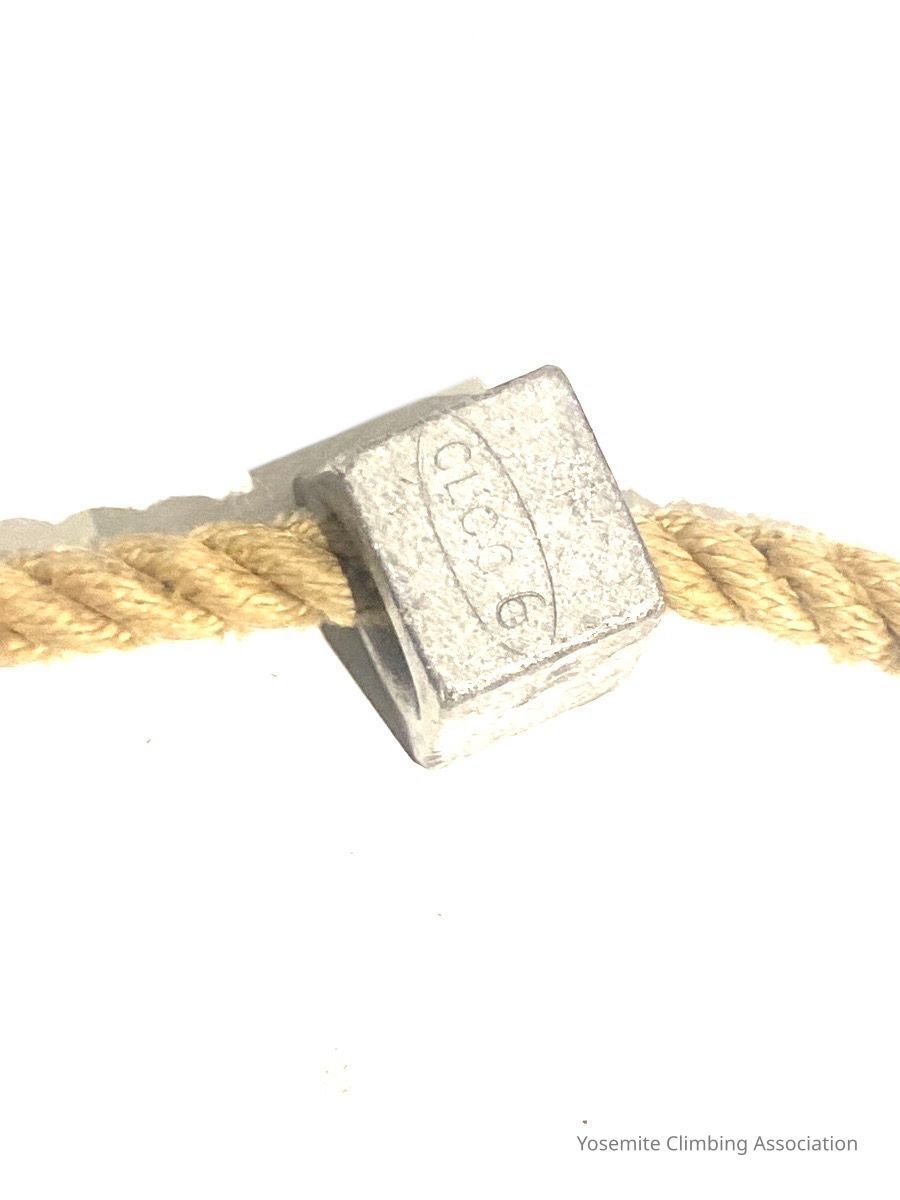 In the UK, climbers did not use or believe in using pitons. They manufactured nuts instead that were placed into cracks at different angles and widths. This Goldline Rope includes one nut manufactured by CLOG, a Welsh company that was one of the first to make clean climbing gear.Collection
