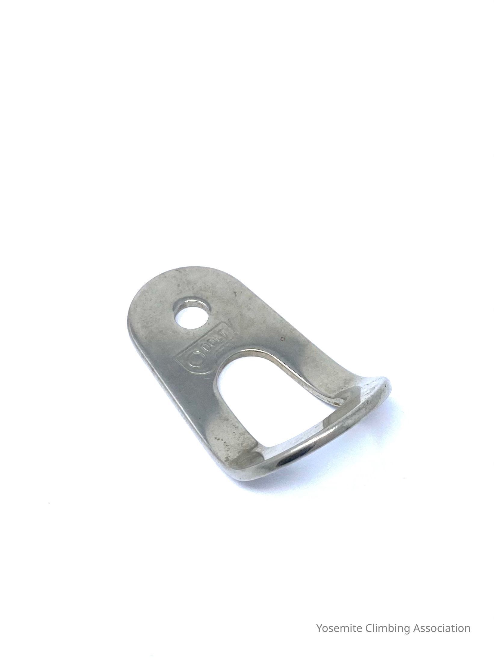 This bolt hanger is brand new and has not been used. Dolt stamped his makers mark into the hanger in-between the bolt hole and the hole for the carabiner. The problem with bolt hangers like this is that they would slowly pull out of the rock because the weight would leverage them loose.Collection