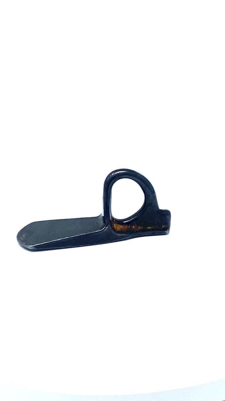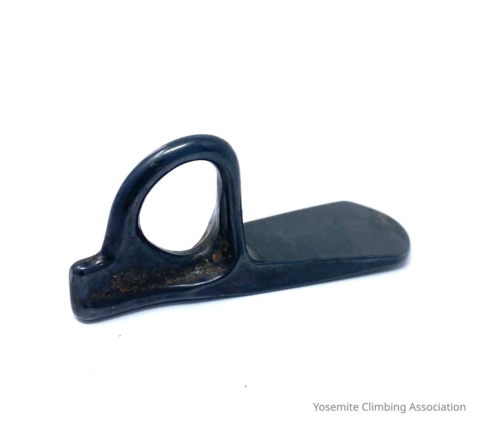 This piton is brand new and was not used while climbing. Has a black enamel coating. Dolt was the best equipment maker at the time, and even had patents for his designs. The eye of his pitons is patented and allows for two carabiners to fit through. Interestingly, manufacturers at the time would usually only inscribe an initial, but Dolt inscribed his name and sometimes USA on the opposite side. Dolt was stationed at Castle Air Force Base in Merced and was a machinist for Mcdonnell-Douglas, creating his pitons on nights and weekends.Collection