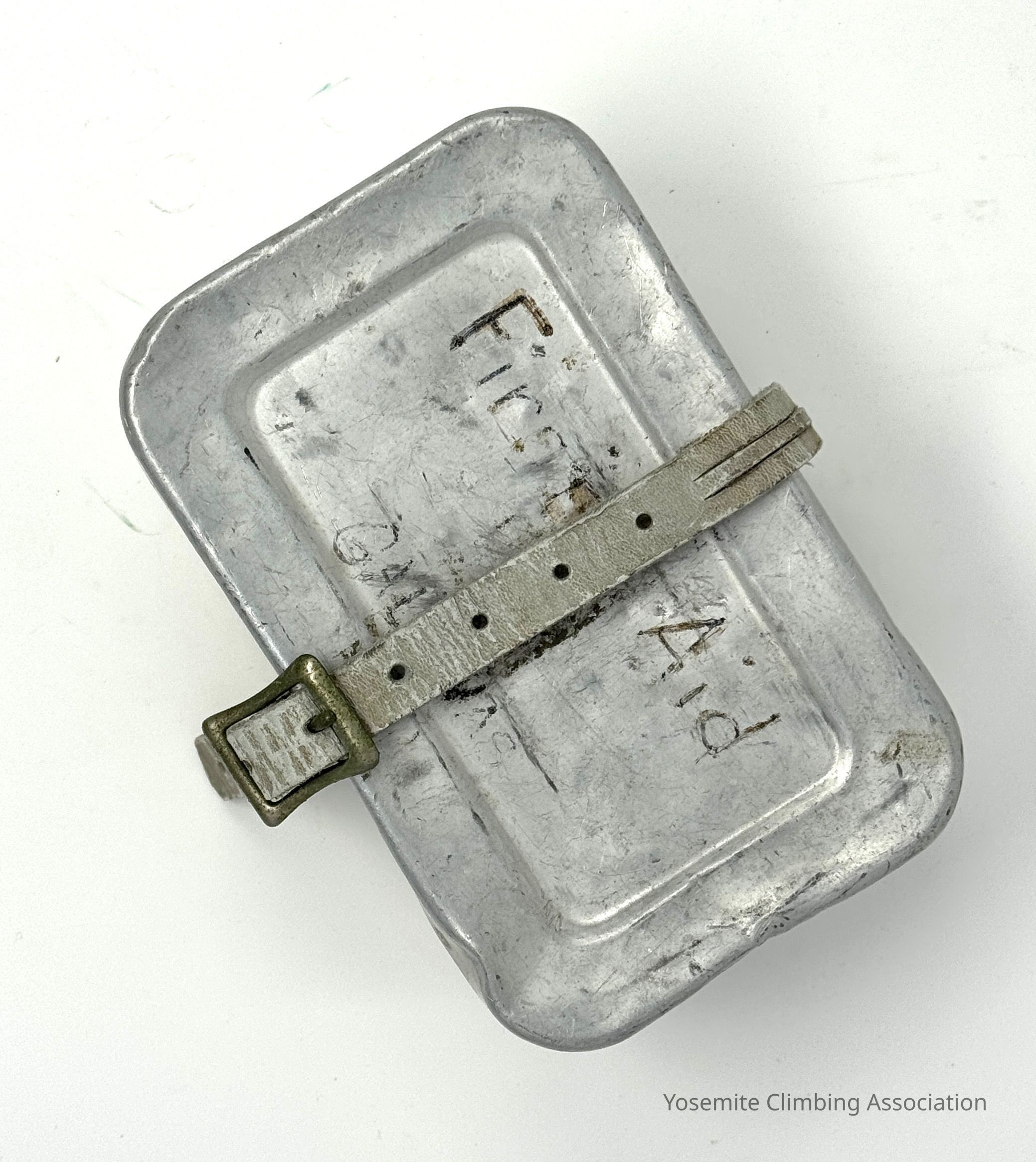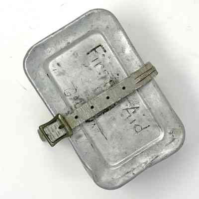 Tin contained First Aid Kit held by leather strapContext