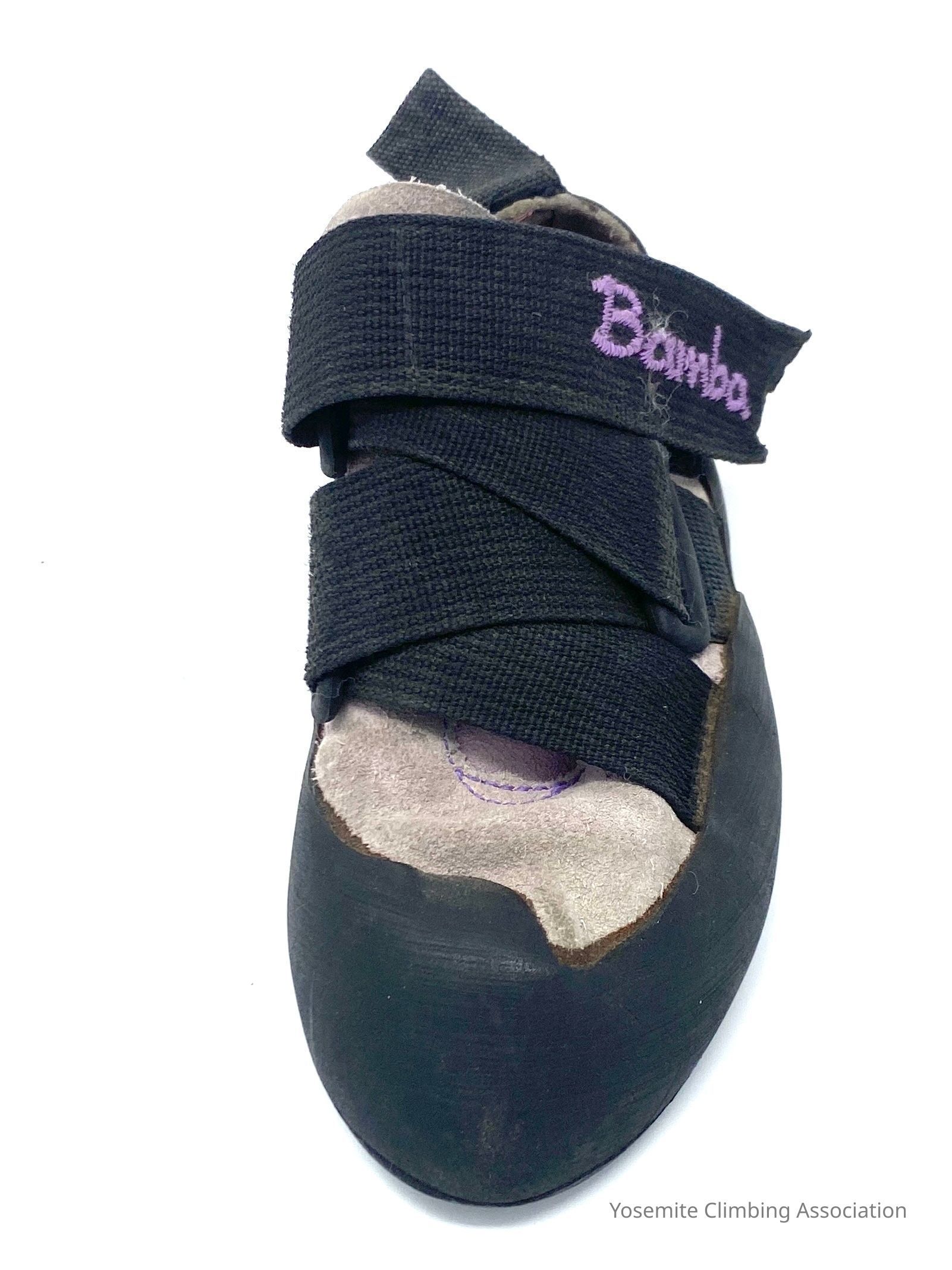 Boreal's "Bamba" shoes worn by Lynn Hill during the first free ascent of The Nose in 1993.Context