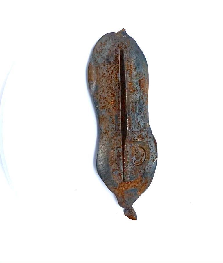 An early manufacturing experiment by Tom Frost and Yvon Chouinard for Chouinard Equipment. They would cast pitons in a mold and then grind away the excess material around the piton. It was more efficient than hand-forging each individual piton, which was necessary since the climbing industry was growing.Collection