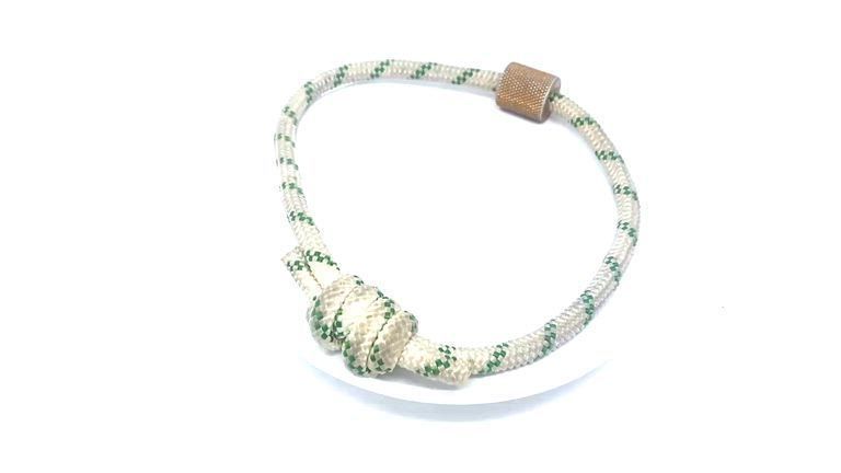 Caption in the museum is: "Gold knurled manufactured nut made by Peck on white Perlon."Create Date