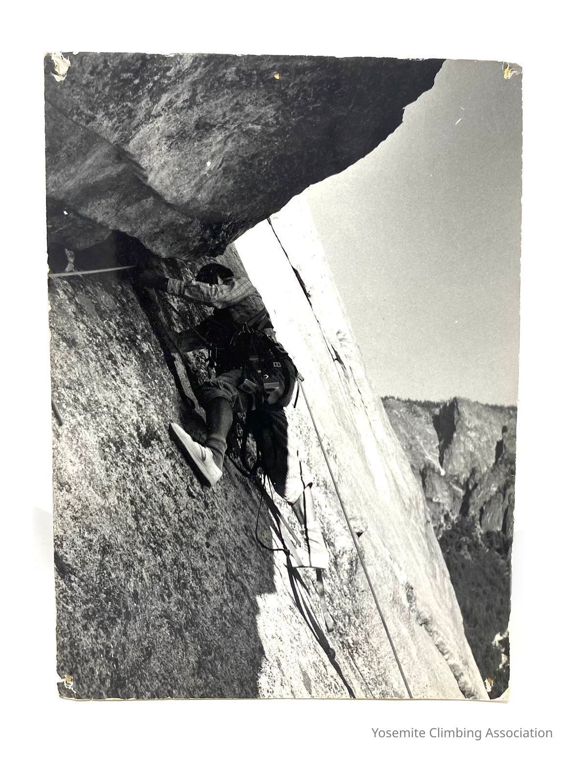Caption in the museum is: "Royal Robbins photo of him climbing in his Tretorn shoes down low on the Salathe Wall of El Capitan, 1961 or 1962. Royal did the first and second ascent of the route.Create Date
