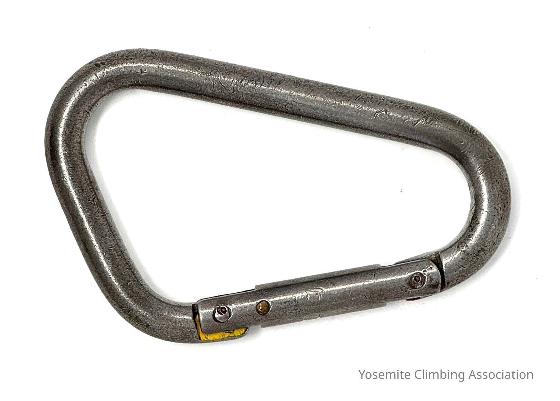 Carabiner - used to rack pitons on a sling as well as for anchors where multiple ropes were involvedContext