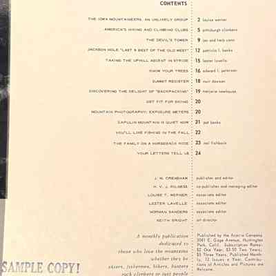 Summit Magazine. In 1969 Dick gave the collection to Jim Thomsen (worked at Kelty 1967-1970)Owner/Agent