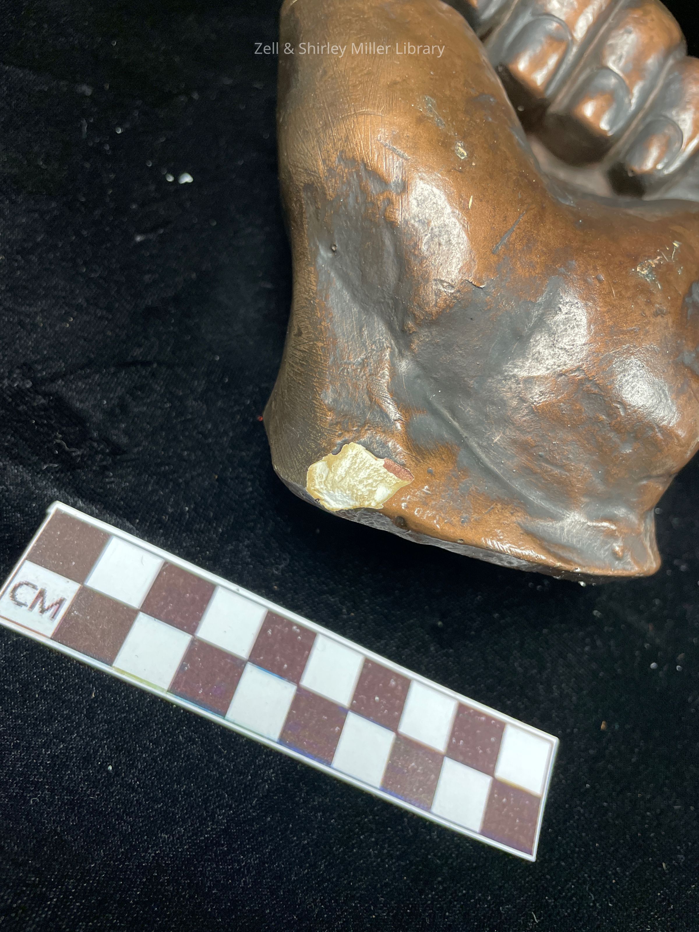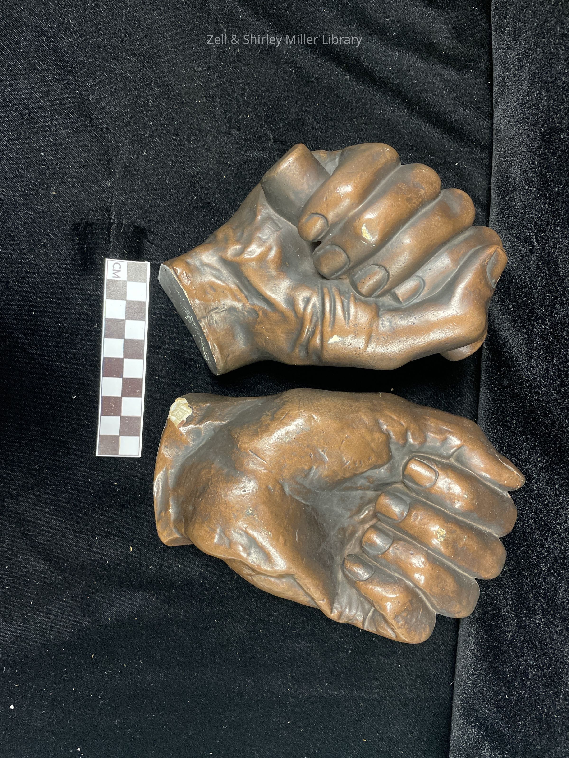 In 1886 Volk’s son sold the casts of Lincoln’s face and hands to a group that proposed having the sculptor Augustus Saint-Gaudens make a limited set of replicas.In 1888 the 33 supporters of this project presented Volk’s personal copies of the life mask and hands, along with bronze replicas produced by Saint-Gaudens, to the U.S. government for preservation. The donation was made on the condition that “the original plaster casts should never be tampered with.” Any future casts could only be made from the bronze replicas.