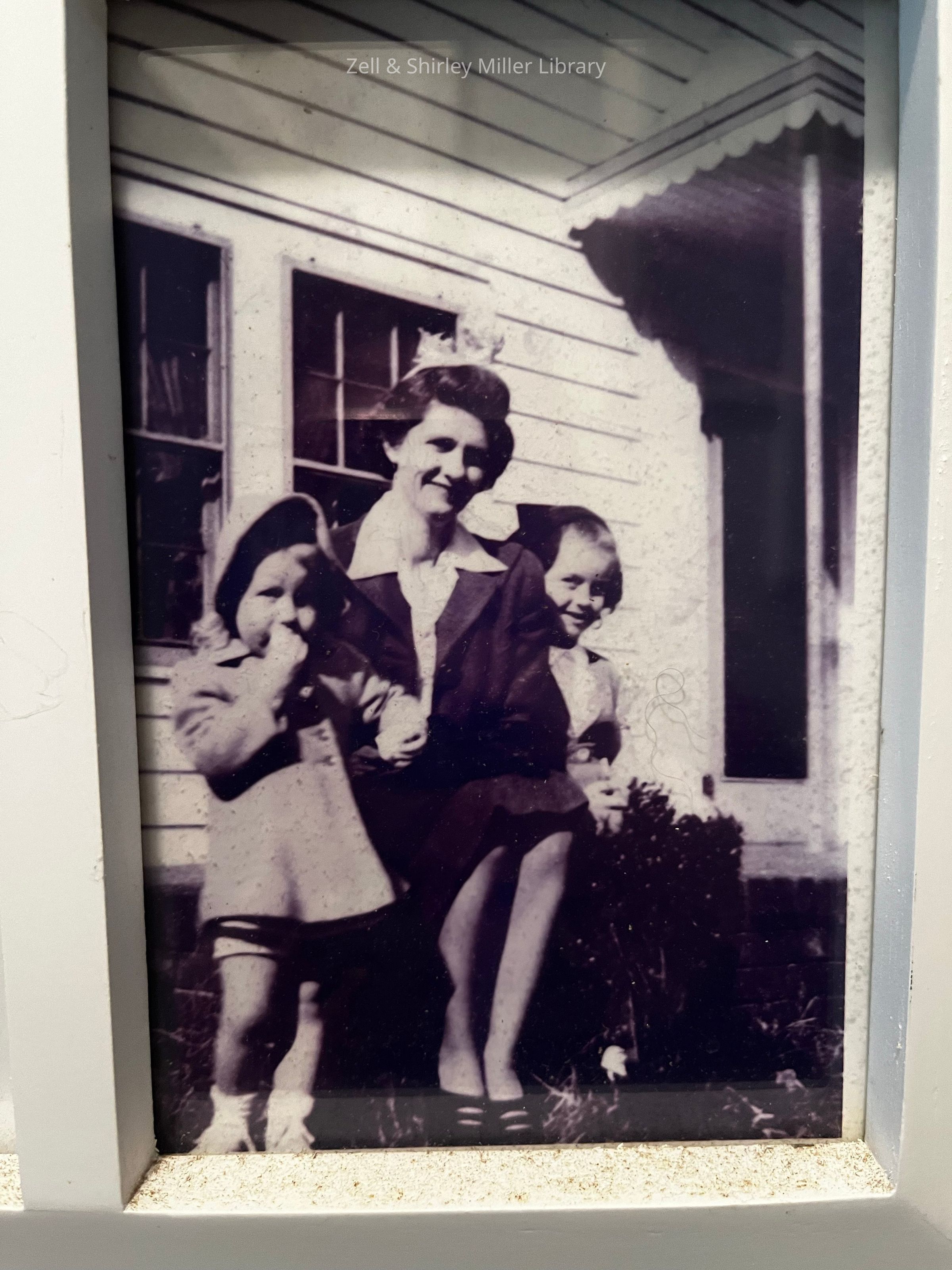 Photo of Martha Cherry and her daughters outside of what seems to be Cherry Farm
