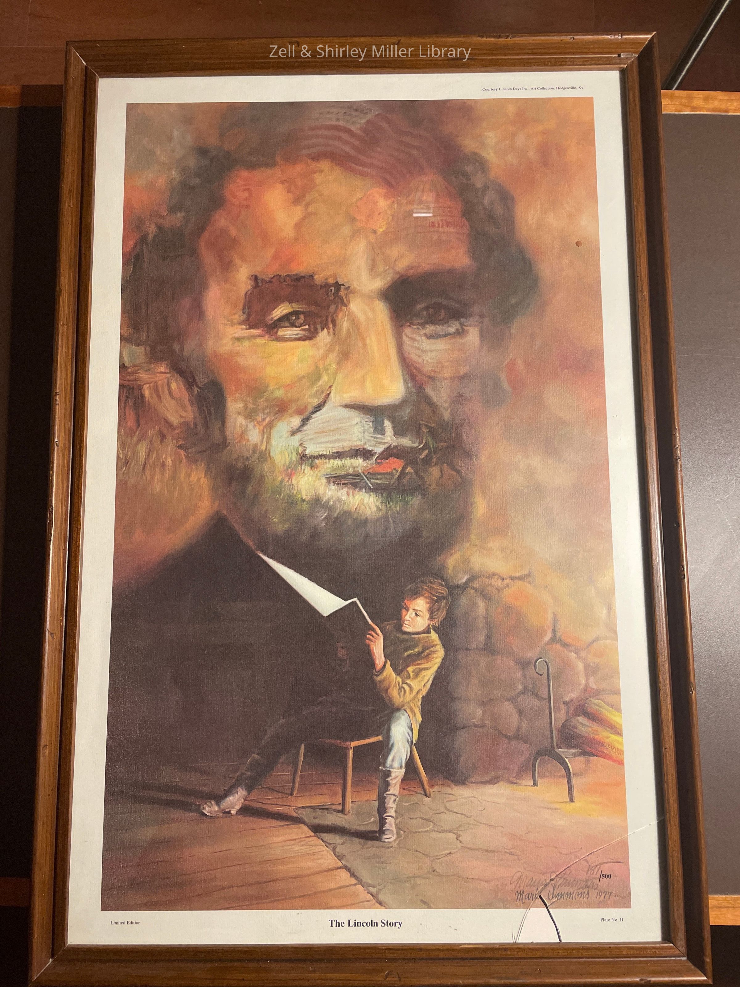 "The Lincoln Story" - small boy reading, adult portrait of Abraham LincolnArtwork Details