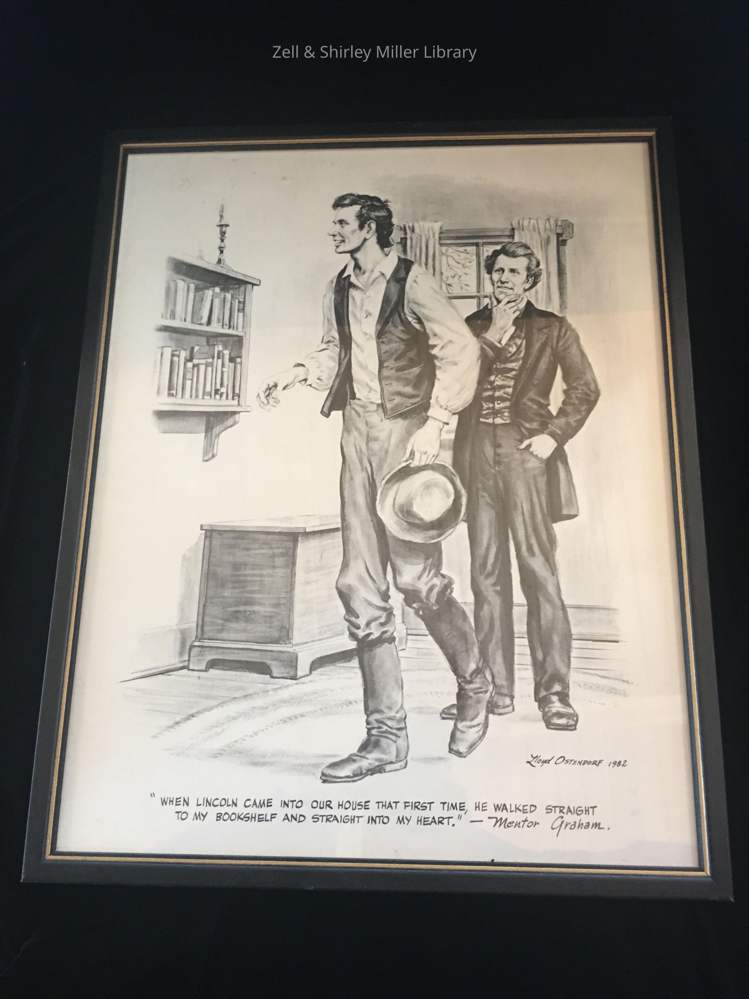 Lincoln and friend with bookshelf quote - Lloyd Ostendorf, 1982