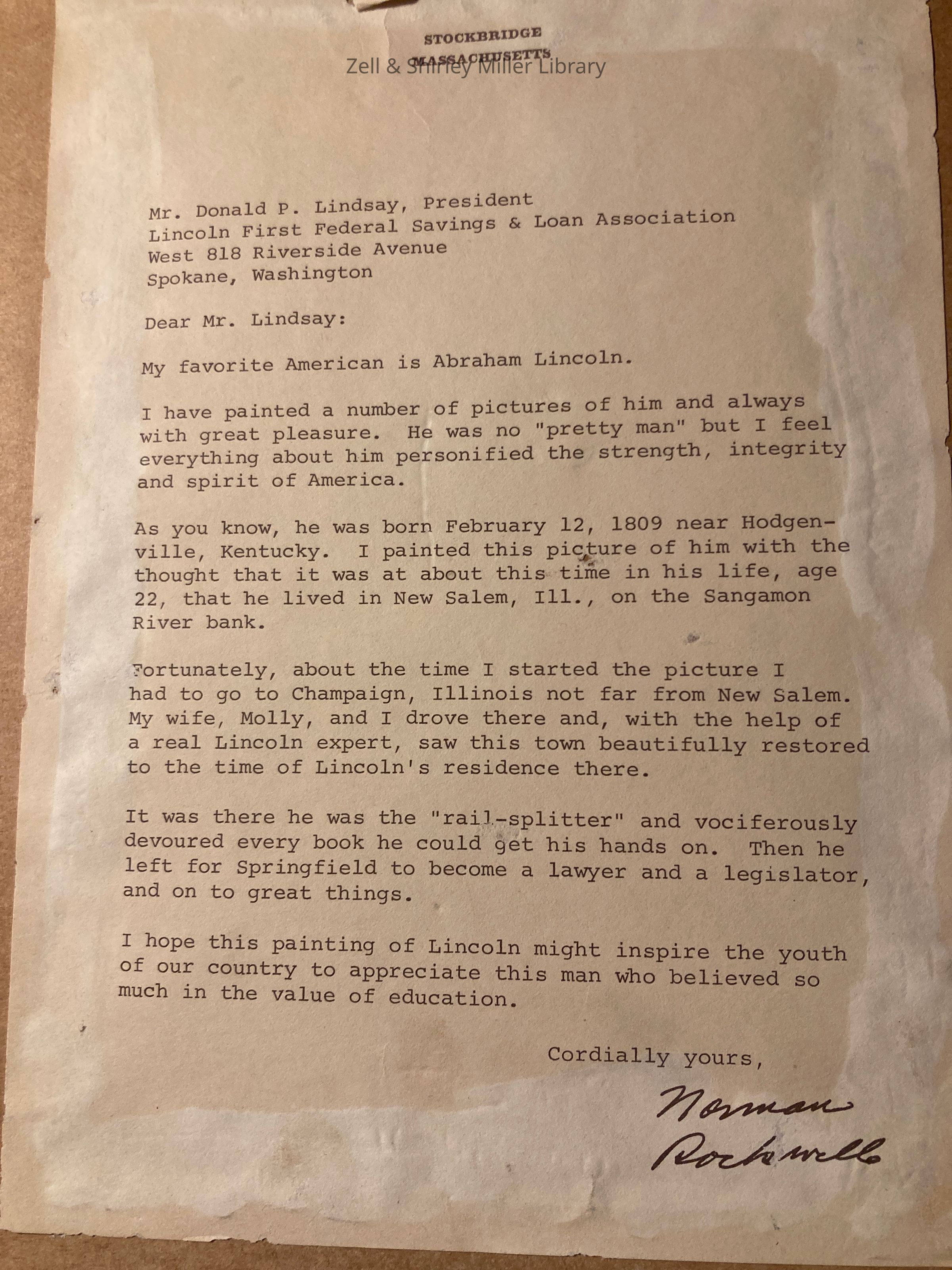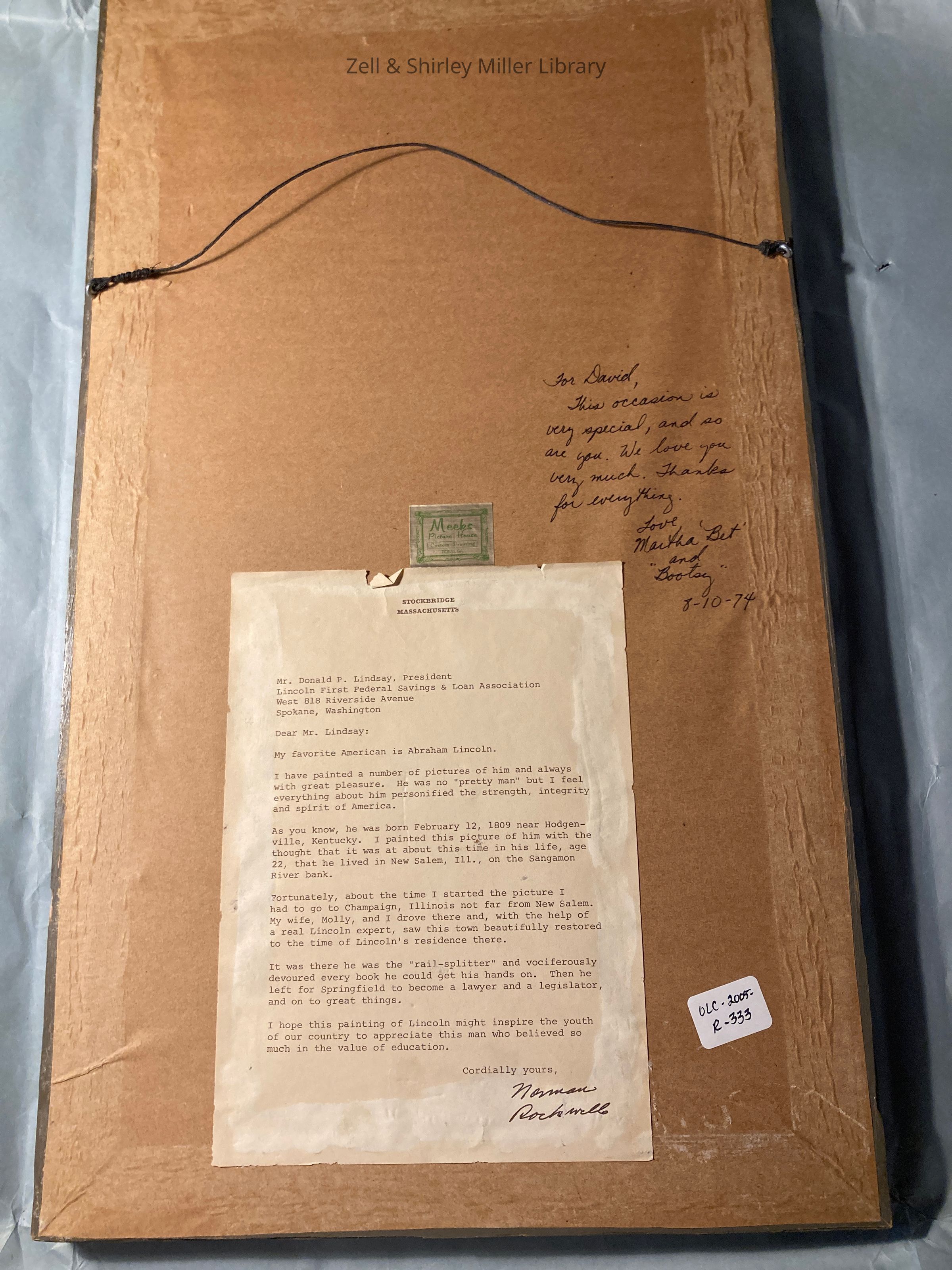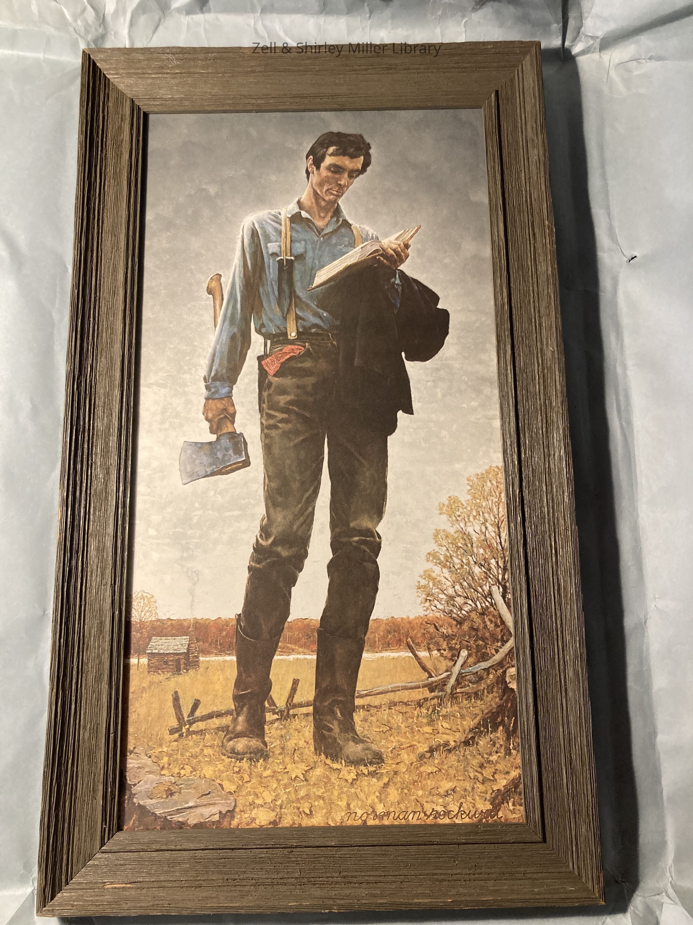 “Lincoln the Railsplitter” by Norman Rockwell. Young Lincoln with ax and book
