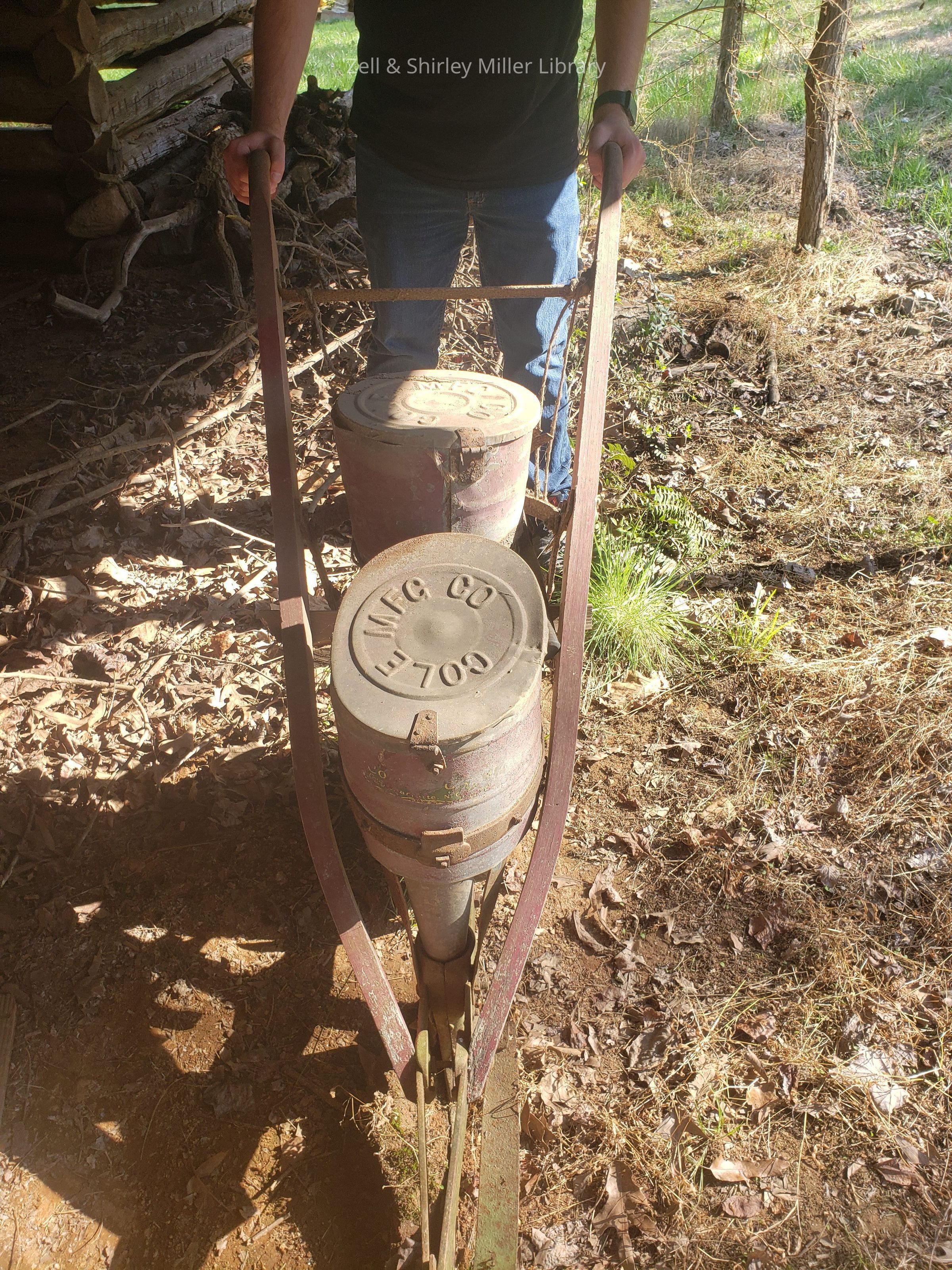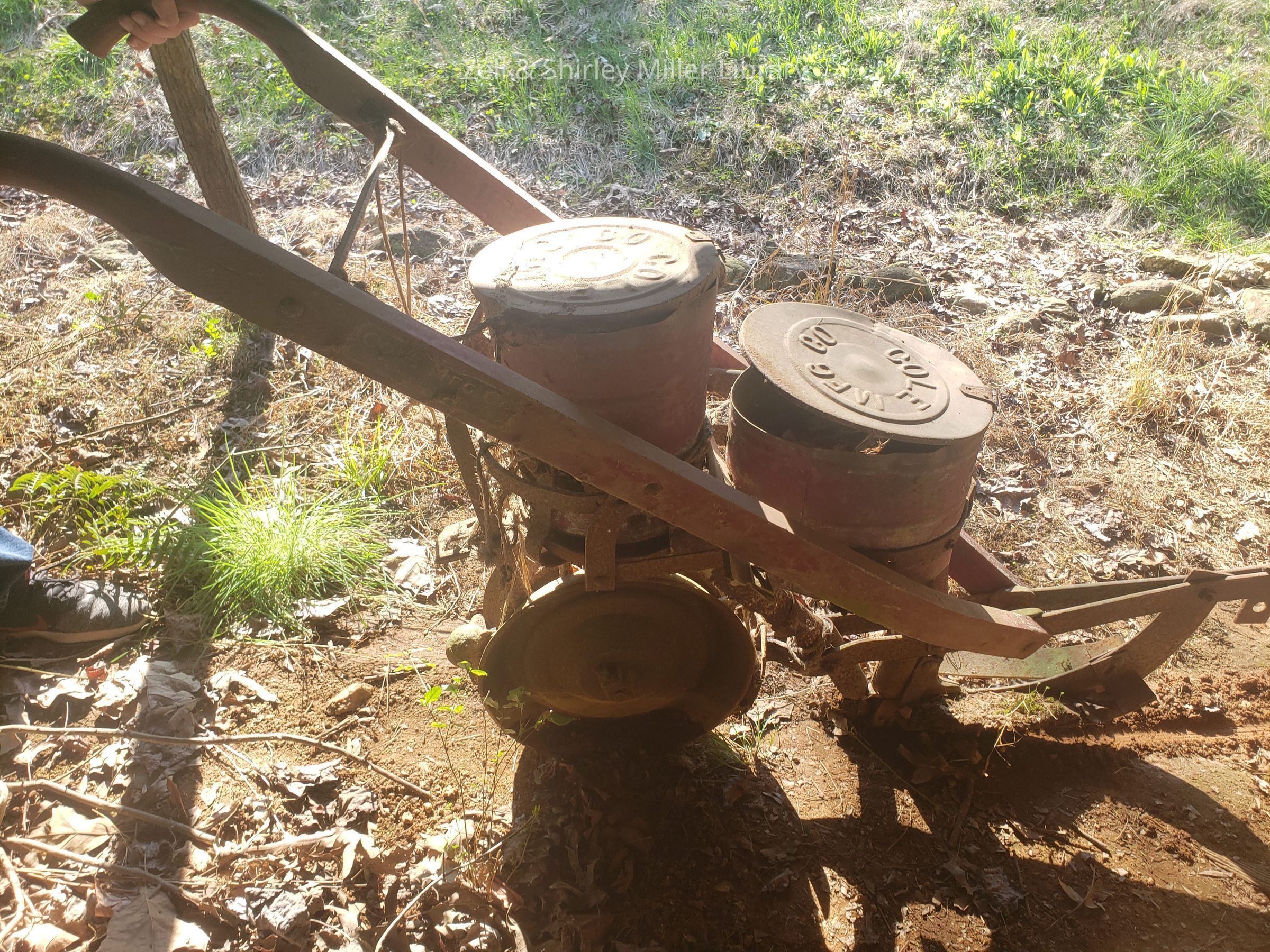 A manual push fertilizer thats well rusted. Bears Cole MFC.co markings.Inscription/Signature/Marks